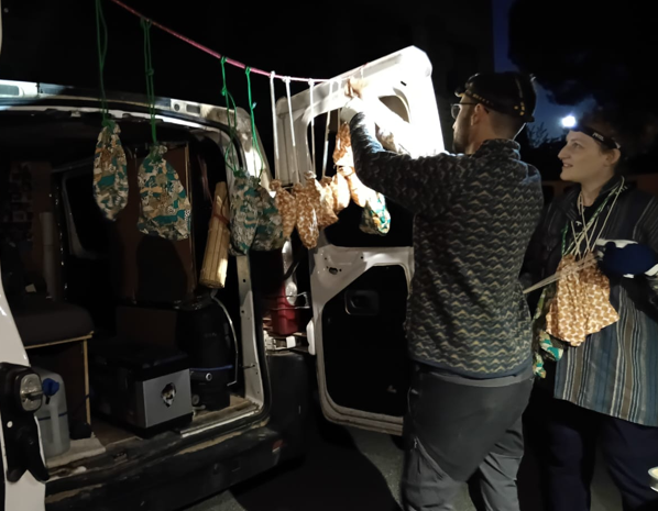 Un engouement émerge alors des membres du GCRA et notamment de Gauthier qui se donne pour objectif à l’été 2025 de confirmer (ou pas) la mise-bas du molosse de Cestoni au lycée agricole d’Aubenas. En quelques mois, il peaufine son idée et prépare un dispositif de capture inspiré des filets de canopée. L’objectif : capturer des individus en sortie de gîte et pouvoir mettre en évidence des indices de reproduction : femelle allaitante ou jeune de l’année.